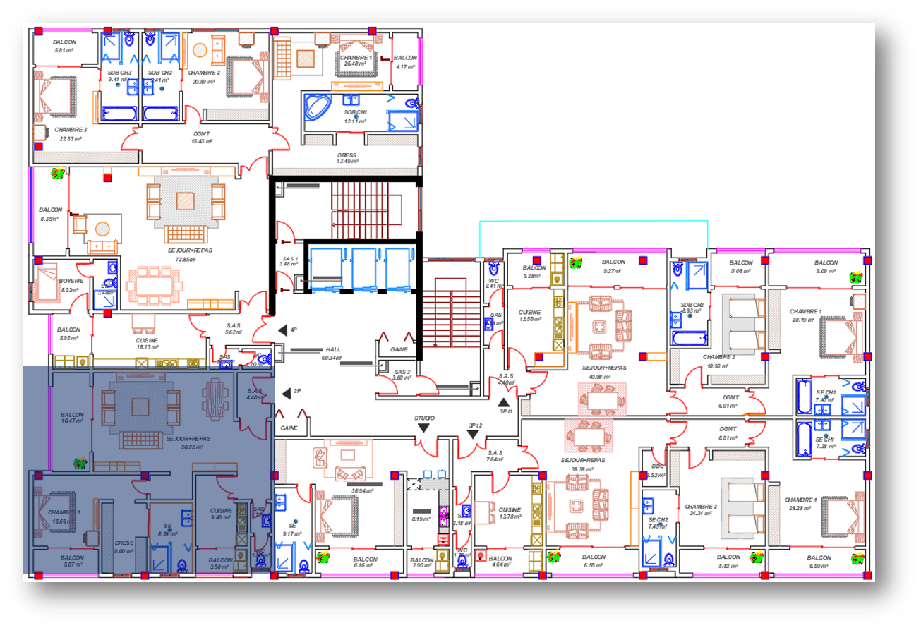 Cet appartement confortable de 121.19m² dispose d’un grand séjour, d’une grande cuisine et d’une chambre avec un grand dressing. Chaque pièce dispose d’un balcon.