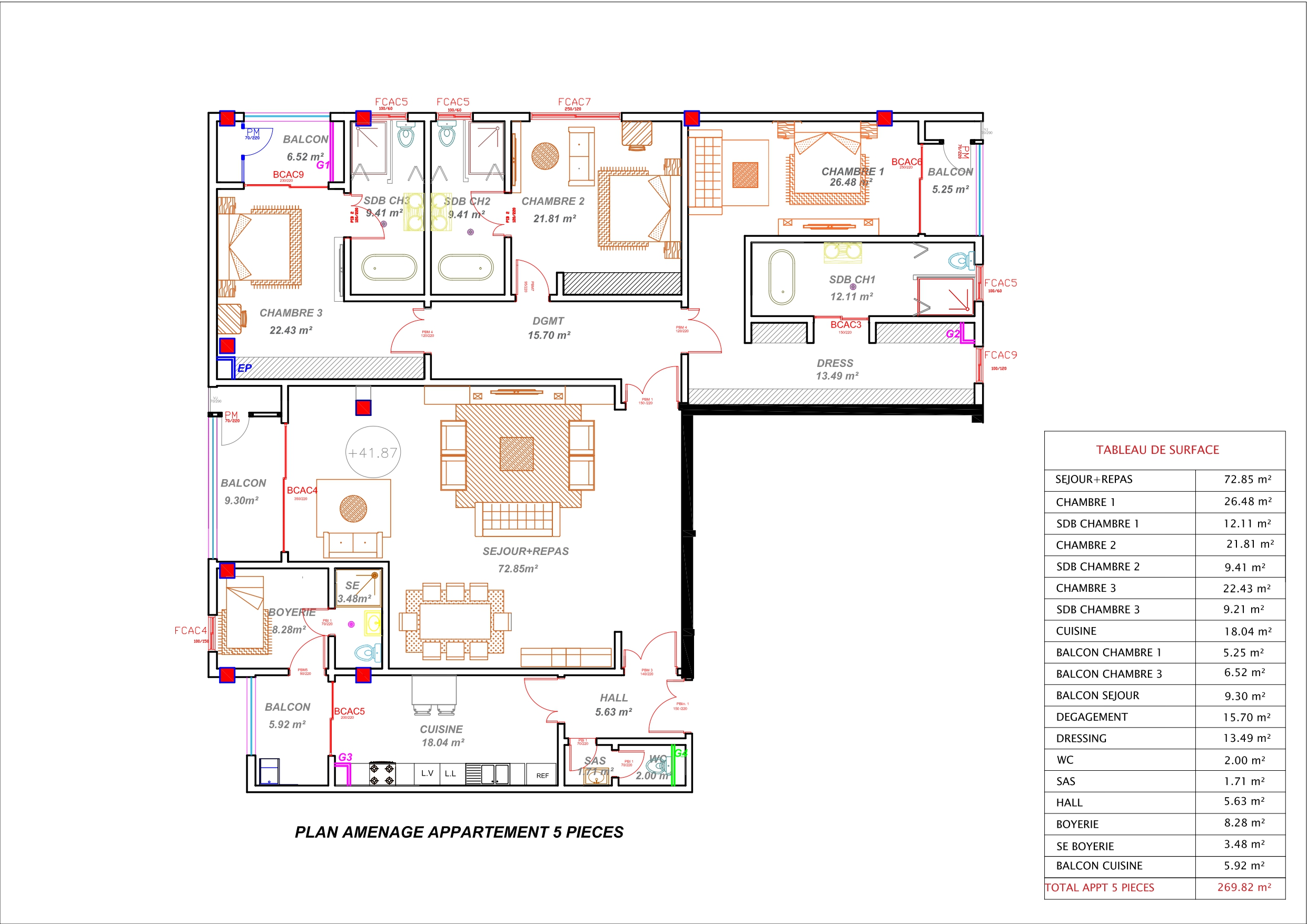 Cet immense appartement de 269.82m² est idéal pour les familles et dispose d’un grand séjour avec loggia, d’une grande cuisine, de 4 grandes chambres avec dressing et salle de bain privative. Les pièces de vie disposent toutes d’un balcon