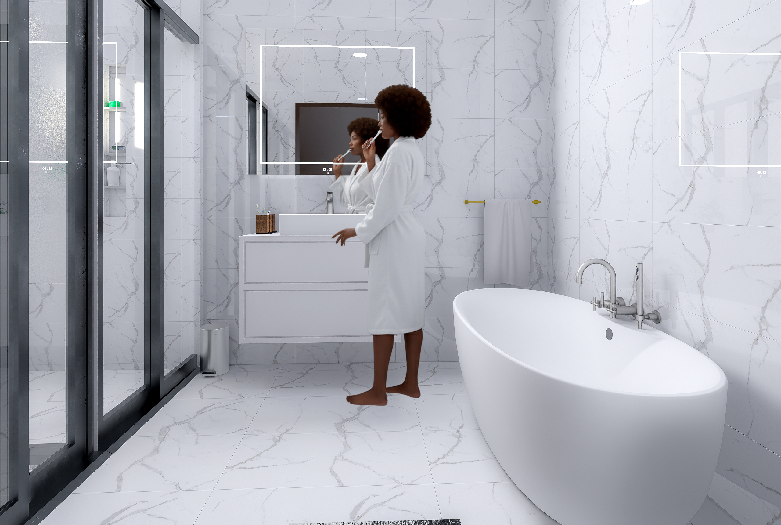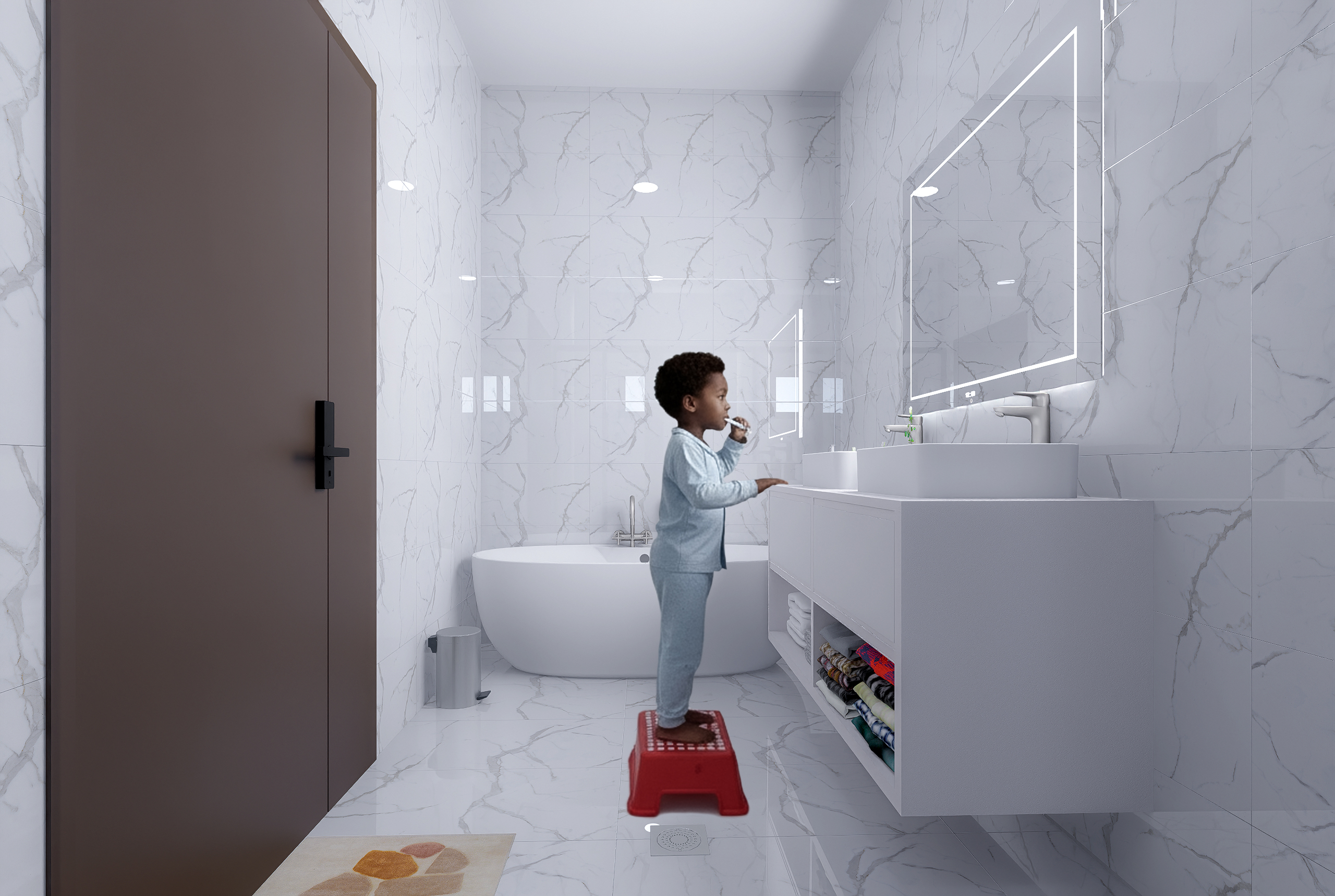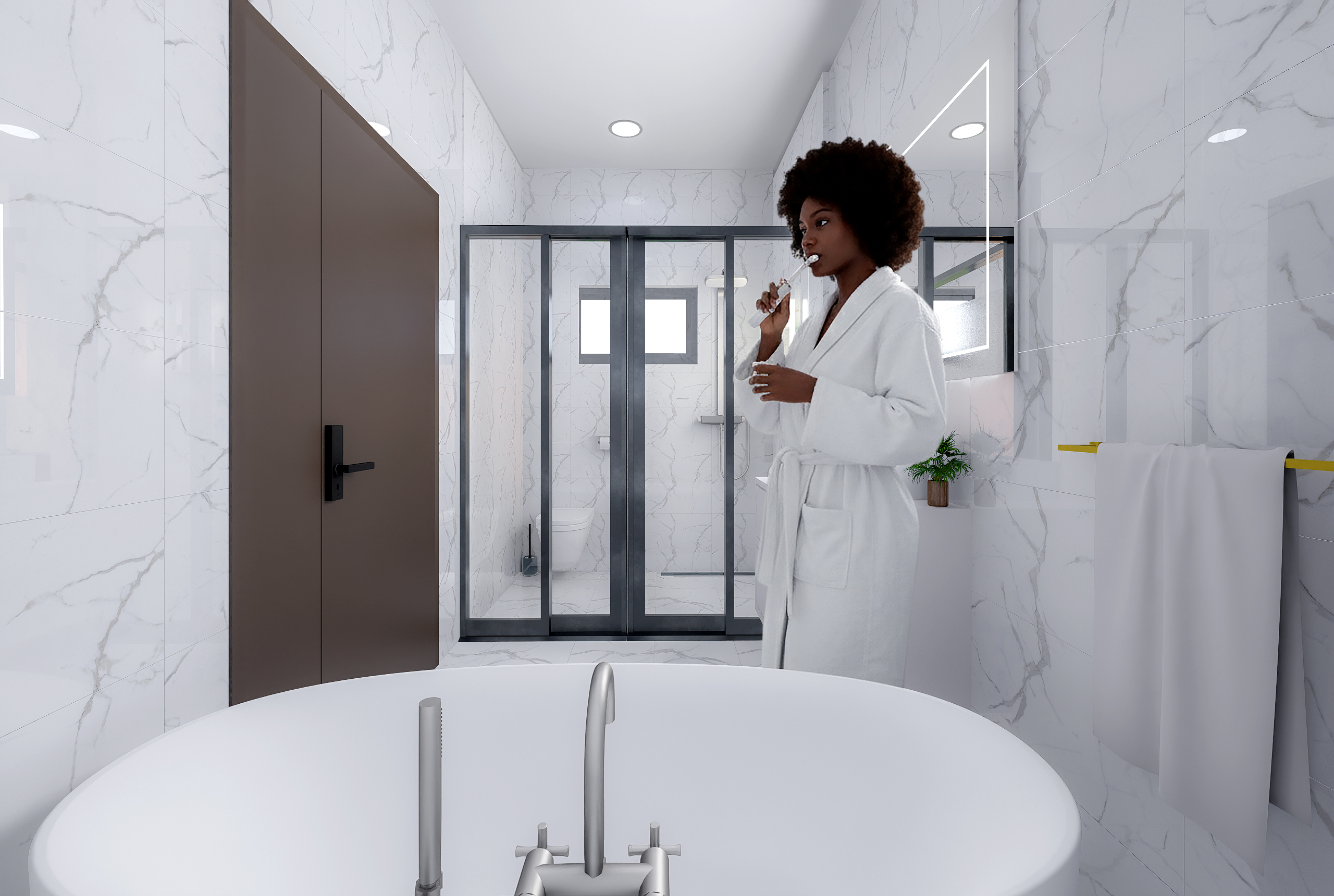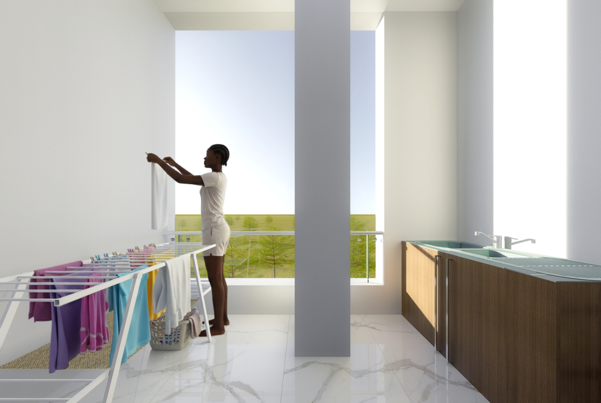Chaque appartement de 160.84m² dispose d’un grand séjour, d’une grande cuisine séparée, et de deux grandes chambres avec dressing et leur salle de bain privative. Les pièces de vie disposent toutes d’un balcon.